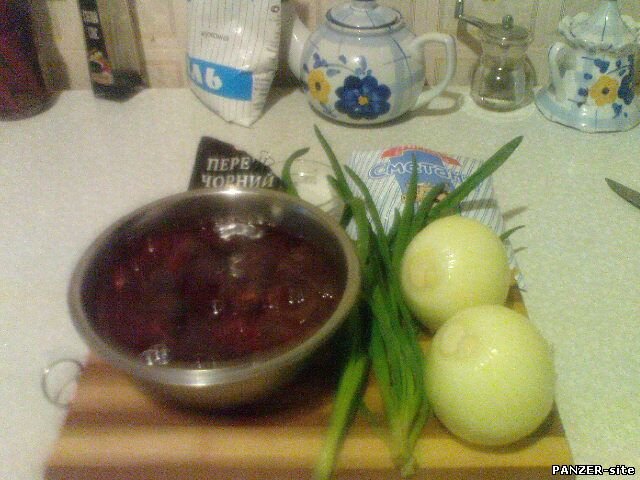 С тех самых пор, как я приобрел себе горшочки, я их юзаю почти постоянно, и выискиваю для них рецепты. Одним из первых рецептов, который мне попался на глаза, был рецепт закуски «Сусамыр». Это то ли киргизское, то ли туркменское блюдо. Продукты шли не дорогие и вполне доступные, но как-то так складывалось, что я все не мог их собрать до кучи – то одно забывал купить, то другое. Но на днях я таки настроился более решительно и купил все, что нужно было (вообще-то нестыковка была только с печенью и сметаной, все остальное обычно было в наличии). И вот, наконец, настал тот час, когда я усилием воли отогнал лень, и выложил нужные мне продукты на стол, с целью приготовления этой самой закуски. А нам понадобится следующее: Печень куриная – 500 гр. Лук репчатый – 2 шт. Сметана – 200 гр. Мука – 2 ст. л. Сыр – 50 гр. Соль, перец. Зелень. Рубаем лук четвертькольцами и обжариваем на подсолнечном масле. Когда лук немного поджарится добавляем в сковородку печень, солим и перчим. Я полож