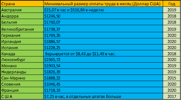 В нашем государстве на данный момент установлен минимальный размер оплаты труда в размере 12130 руб., что на сегодня составляет 164,5 долларов США. Но есть государства , в которых труд граждан ценится гораздо выше. Ниже приведены данные по странам , в которых МРОТ выше 1000$ Руководство нашей страны все старается подтянуть МРОТ к прожиточному минимуму и на сегодняшний день эти составляющие вроде как считаются равными. Как обстоит дело с таким соотношением в других странах - в следующих статьях.