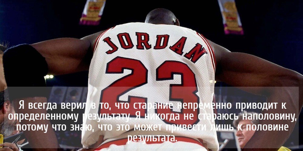 Я всегда верил в то, что старание непременно приводит к определенному результату. Я никогда не стараюсь наполовину, потому что знаю, что это может привести лишь к половине результата. Майкл Джордан