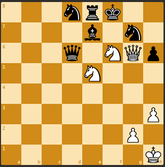 Предлагаю Вам найти выигрыш за белых в безнадежном положении (на первый взгляд). У черных большой материальный перевес. У белых под боем последних два коня. Но белые начинают и выигрывают (мат в 2 хода). Кому задача кажется легкой, попробуйте решить более сложную задачу тут>>>