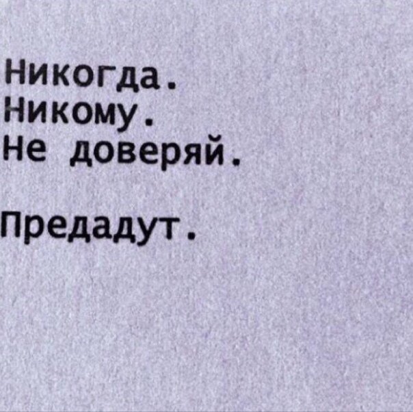 Эту статью я пишу просто от себя... Трудно осознавать, что мне уже 14 лет. Да это так. В любом возрасте кажется, что ты ооочнь много понял за прожитое тобой время. Не знаю, зачем пишу эту статью.... Просто накопилось много за последнее время. Не знаю как вы, но я поняла за все это время одно - никому сильно не надо доверять. Представьте близкого вам человека (не кого-то из родственников).Ну же, представь. А теперь, представь как этот человек тебя предаёт. Просто берет и предает... Лично со мной такое произошло. И я почувствовала что-то ужасное... Ты открылся человеку, ты ему доверял, ты рассказал ему многое о себе.. и все... он уходит...это больно.. Ребят, я просто хочу сказать вам одну вещь (слушать меня вам, или же нет - дело ваше). При знакомстве с человеком, даже если вы почувствовали, что это ваш человек, это именно ваша душа и это тот человек, которого вы так долго искали, не сразу открывайтесь ему и открывайте ему не все ваши секреты, всю вашу биографию и тп... По крайней мере н