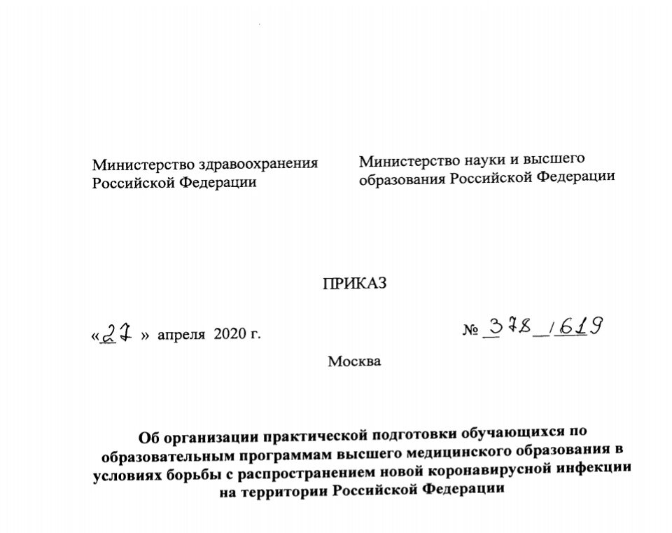 Для чего нужна была самоизоляции? Ну помимо озлобления населения. Для того, что бы выиграть время. Перепрофилировать больницы, нарастить производство тест систем, средств индивидуальной защиты, аппаратов ИВЛ. Внести поправки в законы и выпустить новые приказы. Студентам медикам перенесли практику. На май и на коронавирус. Ознакомьтесь с приказом. Практика будет проходить при подписании добровольного согласия и на договорной основе. Это в теории, на бумаге. На деле же добровольно принудительно и размер оплаты не оглашается. Это практика в конце концов, компенсируют минимально. Большой вопрос вызывает обеспечение потока студентов защитой, которой на данный момент критически мало. Будем надеяться к 1 мая это изменится. Что ж, правительство действительно идёт на опережение, бросая на передовую все более свежую кровь.