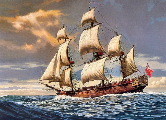 Казалось бы, почему на корабле, находящемся в открытом океане начинался голод? Вокруг же полно рыбы только и делай, что лови и ешь, но не всё так просто! Почему же диета матросов состояла из солонины, галет, твёрдого сыра и алкоголя? Попутный ветер При попутном ветре корабль под парусами за неделю мог проходить около 1200 км, что, согласитесь, не мало. Естественно, что при таком отличном ветре никто и не думал о рыбалке.