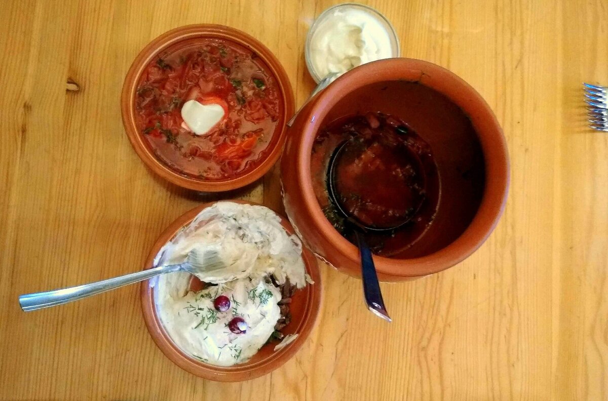 Очередная профессиональная деформация. Ну ладно. Вообще-то я люблю борщ. Зимой. И тот, что готовила сама. В остальное же время года лучше мне его не предлагать. Вот однажды пришла с работы к маме в гости. Мама тащит из холодильника пузатую кастрюлю: «Вот, я тут борща наварила, ты же голодная, хоть покушаешь нормально!» Очень, очень, очень хотелось отказаться. Но это означало бы обидеть маму, которая старалась, которая позаботилась обо мне, которой для меня никакого борща не жалко. И сидела я за столом, и давилась борщом, и чуть не плакала. Почему? А это профессиональное. Самая настоящая профессиональная деформация. Глазами гида хорошо видно, как строится туристическое меню. Те, кто имеет удовольствие путешествовать по России с турфирмами, которые организуют «туры под ключ», знакомы с туристическим меню: это когда вы всей группой идёте в заранее забронированное заведение общепита и там всей группой едите обеды, заранее заказанные менеджерами, в сущности, не имея возможности выбирать. Эт