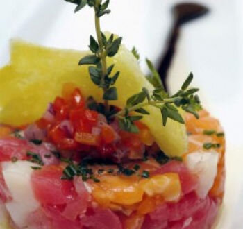 Салат "Тартар" с лососем - это традиционное французское блюдо. Первоначально слово "тартар" обозначало особый способ нарезки продуктов. Теперь же так называют особый салат. Готовится он быстро и просто: ингредиенты мелко нарезают, приправляют соусом и отправляют в холодильник. Салат тартар с лососем хорошо подойдет к любому торжеству или вечеринке. Ингредиенты: 😟 Не подходят? Подберите другой рецепт в категории «Рыбные салаты»! 😉 Рецепт: Шаг 1: Режем лук. Шаг 2: Подготавливаем лосося. Шаг 3: Смешиваем продукты. Шаг 4: Ставим салат в холодильник. Полезное: ★ Советы, идеи и комментарии к рецепту Салат тартар с лососем ★ Другие рецепты в категории Салаты и Рыбные салаты ★ Автор рецепта: Екатерина Васильева © 08.01.2012
