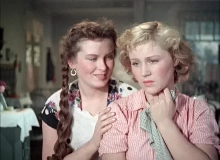 Доброе утро. СССР, 1955. Режиссер Андрей Фролов. Сценарист Леонид Малюгин. Актеры: Татьяна Конюхова, Изольда Извицкая, Юрий Саранцев, Владимир Андреев, Лев Дуров, Евгений Матвеев, Иван Любезнов, Афанасий Белов, Нина Агапова и др. 30,6 миллионов зрителей за первый год демонстрации. Основательно позабытый сегодня режиссер Андрей Фролов (1909-1967) прожил недолгую по нынешним меркам жизнь и успел поставить всего 7 фильмов, три из которых («Доброе утро», «Первая перчатка» и «Зеленый дом») вошли в тысячу самых популярных советских фильмов. Этот фильм и сегодня нравится многим зрителям XXI века (далее приводятся цитаты зрительских откликов, опубликованных на портале кинотеатр.ру): «Волшебный, восхитительно снятый фильм о молодости, любви, доброте. Фильм о другом мире, где живут наивные, открытые и бесхитростные, как дети люди. Это и было то самое светлое будущее, мечта человечества, мимо которого прошли в поисках чего-то другого, сверхъестественного, и оказалось, напрасно, а счастье, оказыва