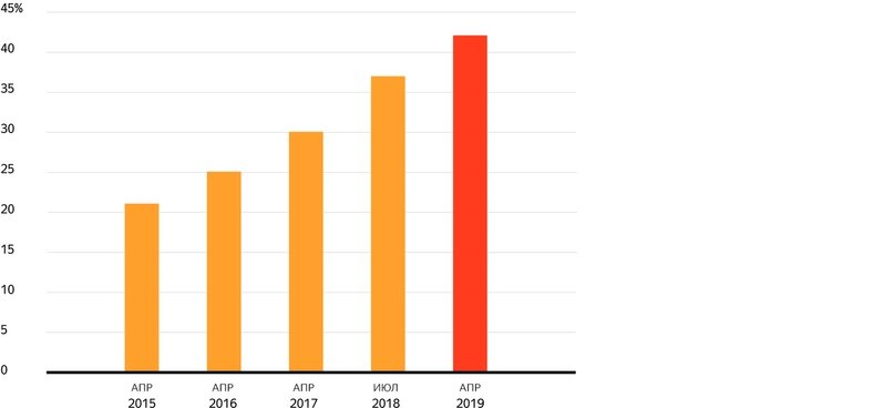 Покупки в интернете становятся всё более обычным делом: доля россиян, заказывающих товары онлайн, уже превысила 40%; Даже недорогие товары ежедневного потребления всё чаще заказывают онлайн. Проникновение онлайн-торговли По сравнению с прошлым годом доля россиян в возрасте от 16 до 55 лет, делающих покупки в интернете, выросла на десятую часть. Теперь она составляет уже 42% — в два раза больше, чем в 2015 году. РОСТ ЧИСЛА ОНЛАЙН-ПОКУПАТЕЛЕЙ Доля от всех жителей России 16–55 лет. Основные причины, по которым россияне делают покупки в интернет-магазинах, не меняются: это кажется рациональным способом распорядиться своими деньгами и временем. Около 60% опрошенных называют преимуществом возможность сравнить цены и купить товар дешевле, чем в обычном магазине. Почти половина респондентов говорят о том, что им нравится, что можно изучить отзывы других людей, делать покупки в любом месте и в любое время и не тратить силы на поездки по магазинам. ПОКУПКИ ВСЁ ЧАЩЕ СОВЕРШАЮТ С МОБИЛЬНЫХ УСТРОЙСТ