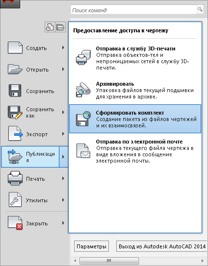 Сегодня разберем ситуацию, когда необходимо подготовить к выдаче большое количество файлов с чертежами, которые могут содержать внешние ссылки и какую-либо лишнюю информацию ( неиспользуемые слои, стили, блоки и т.д.). В данном случае нам поможет функция Сформировать комплект. С помощью нее вы сможете: Итак, чтобы сформировать комплект переходим через главное меню -> Публикация -> Сформировать комплект: Либо командой ФОРМКОМПЛЕКТ. Я обычно работаю через таблицу файлов, т.к. так гораздо проще выбирать нужные файлы: По умолчанию отображается только открытый файл. С помощью Добавить файл добавляем все нужные нам файлы. Далее переходим во вкладку Наборы параметров и либо создаем новый, либо редактируем существующий: 1. Тип комплекта: 2. Формат файлов: Выбираем нужный, если необходимо понизить версию AutoCad или оставляем без изменений; 3. Прописываем путь, куда будем сохранять комплект; 4. Параметры пути: 5. Операции: 6. Включаем параметры по необходимости. Нажимаем ОК, ждем завершения