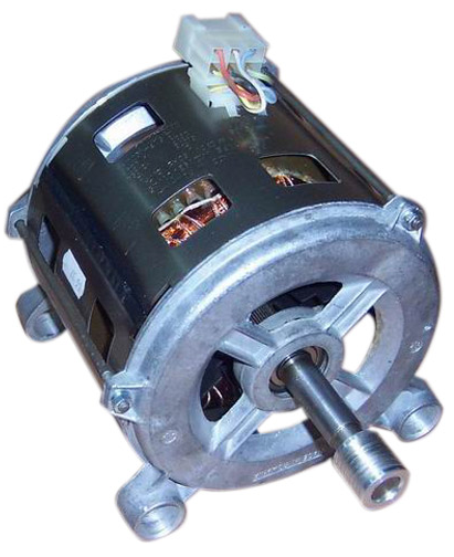 Домашнему мастеру всегда пригодится однофазный двигатель небольшой мощности. На картинке асинхронный двигатель от стиральной машины. Интересен он тем, что имеет две разные обмотки, каждая по три и, соответственно, всего 6 выводов. При помощи командоконтроллера осуществляется двухступенчатое переключение скоростей для стирки и отжима. Итак, первая обмотка. Имеет скорость 400 об/мин, намотана под углом 120 градусов несимметричной звездой. Один вывод имеет меньшее количество витков, При помощи Омметра легко определить выводы для подключения. Два замера дадут одинаковый результат, прим. 50 - 55 Ом а третий, порядка 75 - 80 Ом. К выводам с большим сопротивлением подключаем сдвигающий конденсатор и сетевой провод N. Переключая провод на соседний вывод с конденсатором, меняем вращение. На свободный вывод подключаем второй сетевой провод L. В принципе, где фаза, где ноль, значения не имеет. Получаем, что выводы с меньшим сопротивлением - рабочая обмотка а с большим - пусков