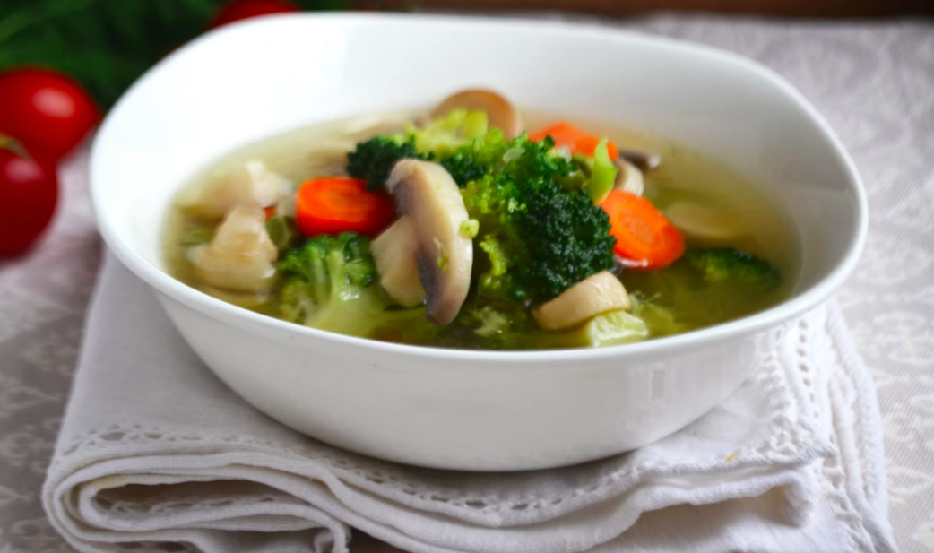Рецепт овощного супа с грибами для диабетиков Ингредиенты: Этапы приготовления: Промойте и нарежьте ломтиками грибы. Сварите их до полуготовности, бульон слейте. В кастрюле доведите до кипения чистую воду и добавьте отварные грибы, нашинкованную капусту, нарезанные кубиками кабачки и морковь. На сковороде разогрейте растительное масло, поджарьте измельченный лук. Поджарку отправьте в посудину, посолите, варите суп около 10 минут. В готовое блюдо добавьте зелень. Приятного аппетита!