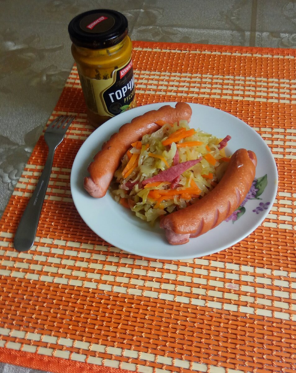 В статье даны несложные рецепты блюд на скорую руку, которые можно приготовить вместо традиционной каши и яичницы. Кофе и бутерброд на завтрак, это конечно лучше, чем ничего, но даже быстрый завтрак можно разнообразить. Фантазируйте, удивляйте и радуйте себя и своих близких, подберите рецепты завтраков на каждый день. Главное не пропускайте утреннюю трапезу-это важный прием пищи за день. Для хорошего самочувствия не грузите с утра пищеварительную систему жирной едой. Тушеная капуста с сосисками 2 порции / 20 минут Ингредиенты: Капуста белокочанная - 200г Лук репчатый- 1 шт. Морковь – 1шт. Колбаса варено-копченая -20г Сосиски молочные - 4 шт. Масло растительное -1 ст. л. Тмин, соль - по вкусу. Как приготовить: В разогретой на огне сковороде с тмином, обжарьте лук с мелко нарезанной колбасой, добавьте тонко нашинкованную капусту, затем нарезанную или натертую на крупной терке морковь, посолите перемешайте, тушите на среднем огне 15 минут. К тушеным овощам добавьте сосиски, туш