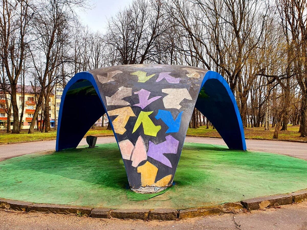 Арт-объект "Парус" Признаться, я сейчас была очень удивлена, что беседка, которую в народе называют "трусами" на самом деле парус :) Как бы то ни было, но я не представляю себе парк без этого сооружения. Наверное потому, что помню его всю свою жизнь. Архитектурная форма «Парус» появилась в новгородском кремлевском парке в 1967 году. Подобные шатры, построенные по типовым проектам, были разработаны Госстроем и украшали не один советский сквер или парк. В своё время внутри композиции располагались скамейки, а сама форма была раскрашена в разные цвета радуги. Сейчас беседка разрисована внутри различными достопримечательностями Новгорода. И еще я удивилась, пока искала материал, что с беседкой связана одна туристическая легенда: если пройти под ней змейкой, то желания ваши сбудутся, а путешествие будет удачным и легким. А мы не знали :)