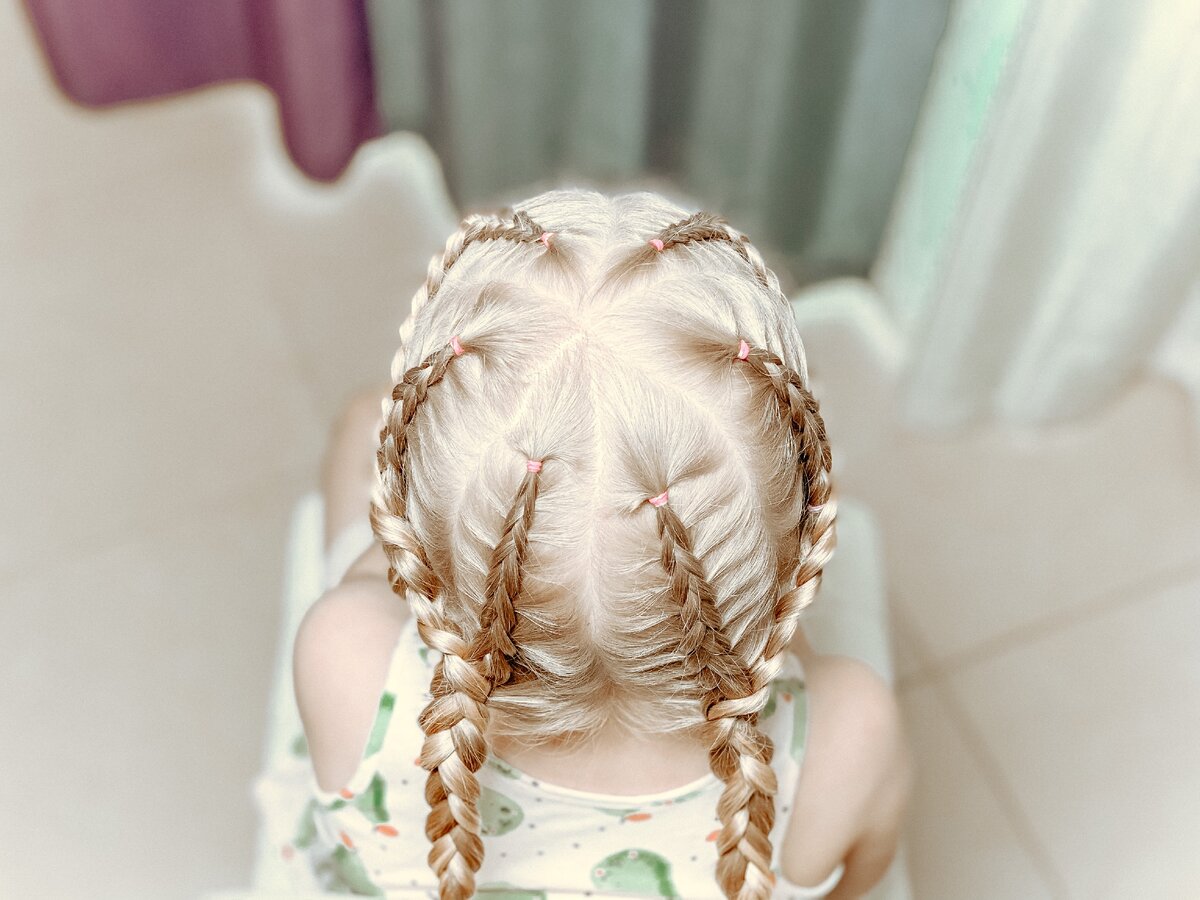 И далее, начиная с передней косы сплетаем все косы с одной стороны и симметрично с другой.