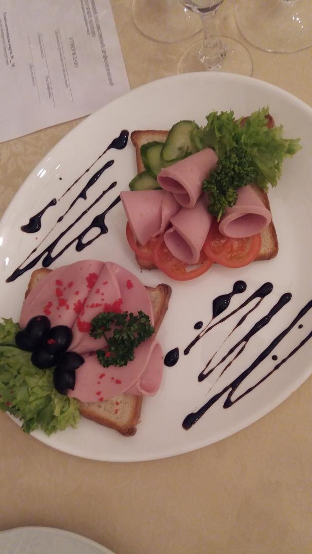 Необычная подача на стол. Ингредиенты: Выложите все ингредиенты слоями. Ветчину сделать легко в виде розочки, лилии. Тарелку я декорировала бальзамическим уксусом. Приятного аппетита!