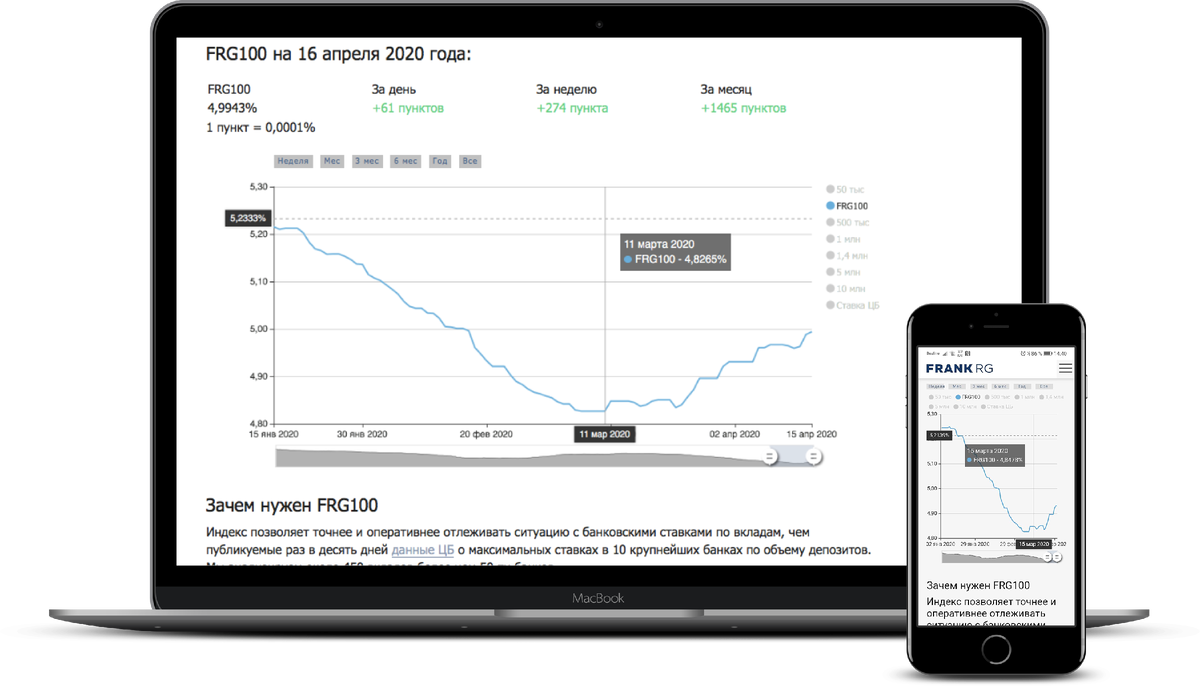 Frank Media продолжает публиковать в открытом доступе данные платного продукта Frank RG «Мониторинг банковских тарифов» с изменениями ставок по вкладам в банках, а также данные о текущих ставках в дистанционных каналах продаж 20 крупнейших банков по объему депозитов. Два банка ухудшили условия по депозитам 29 апреля, узнай, кто это 🔥 ☆ Дорогие подписчики и пользователи Дзена. Мы понимаем, что вам хотелось бы читать нас здесь, не переходя по ссылкам. Но у Дзена очень сложные условия подключения новостных сайтов к каналу. Одно из них — наличие определенного объема трафика. Поэтому — читайте нас на сайте frankrg.com по ссылкам в анонсе. Это не от неуважения к вам. Просто мы не хотим оставлять трафик в Дзене (в том числе и потому, что намерены выполнить требования платформы). Спасибо, что читаете нас. 💕 Редакция Frank Media Татьяна Алешкина, Александра Киракасянц, Ольга Суховейко 💥 Хотите сравнить ставку по своему банковскому вкладу с рынком? Тогда вам сюда: С 16 апреля мы запустили