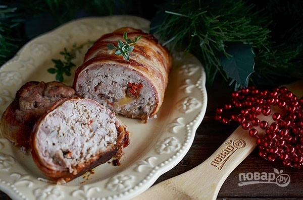 В тонких ломтиках хрустящего жареного бекона завернут сочный фарш с пикантной овощной начинкой и нежным сыром. Очень вкусно и празднично! И готовится гораздо проще, чем кажется. Обязательно попробуйте приготовить его!