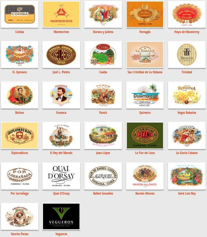 Первыми идут так называемые «глобальные бренды», то есть самые известные и популярные марки Habanos, которые можно купить во всех без исключения странах, где представлена продукция кубинского монополиста: Cohiba, Montecristo, Romeo y Julieta, Partagas, Hoyo de Monterrey и H.Upmann. Эти шесть сигарных брендов являются вершиной продукции Habanos как в плане качества используемых табаков и скрутки, так и в плане их продвижения по всему миру. Среди них любой афисионадо легко найдет сигары себе по вкусу, ведь в рамках шести глобальных брендов представлены сигары практически всей вкусо-ароматической палитры и всевозможной крепости, от мягких Hoyo de Monterrey до максимально крепких Partagas. Наличие внутри многих топовых брендов различных линеек (этакие бренды в бренде) еще сильнее увеличивает вариативность флагманов кубинской сигарной промышленности.