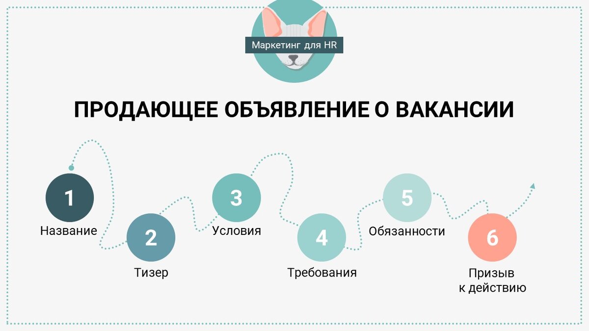 Есть универсальная структура, с которой можно начать свой путь к продающим текстам для сайтов по поиску работы. Эта структура поможет новичкам и тем, кто не часто размещает тексты вакансий.
