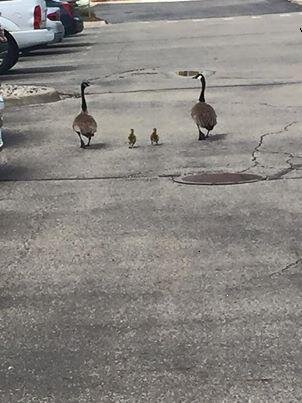 Эту прекрасную,смелую, дружную семейку я встретила в США, когда находилась в гостях у дочери. Зрелище семейства уток, чинно переходящего дорогу, не может не растрогать человека. Важно вышагивающие утки - мама и папа и быстренько семенящие с ними малыши покорили меня сразу. Это так мило и очень трогательно. Дочь мне сказала, что это довольно частое явление в США. Тихие проулки, широченные автобаны, центральные проспекты крупных городов — эти птицы будут отважно форсировать любую дорогу, не страшась ни автомобилей, ни двуногих или четвероногих незнакомцев. Часто люди, потрясенные такой безрассудной смелостью, сами расступаются перед утиной кавалькадой и даже сопровождают птичью семью некоторое время, наблюдая, чтобы уткам не был нанесен вред. И в самом деле, как не помочь этим пернатым красавцам? … Очень дружная семья – мама, папа, сыновья! Замечательный «народ» на прогулочку идет!