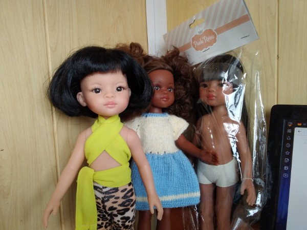 А наше увлечение куклами Паола Рейна началось с поддельной девочки, которую преподнесла ребенку бабушка. Стоила она что-то около 400 рублей в магазине китайской одежды – они есть в каждом городе, называется Семейный, или Московская ярмарка, или Социальный и иже с ними. По фотографиям в интернете я заподозрила ее глубокое сходство с паолкой по имени Карла и увлеченно начала вязать девице гардероб, ориентируясь на схемы для Паолы Рейна. Постепенно у нас появились и натуралочки, и вот мне захотелось показать, чем тело куклы Паола отличается от подделки.