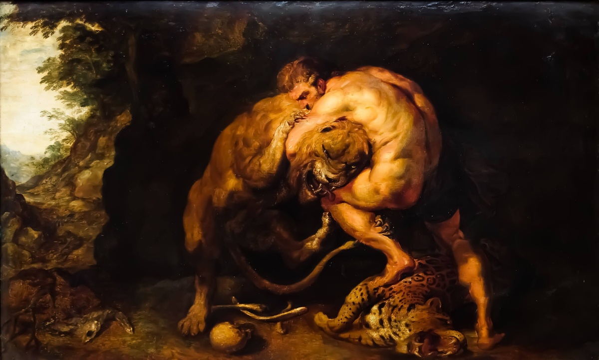Немейский лев - мифический лев больших размеров в древнегреческой мифологии с невероятно твёрдой шкурой, которую не брало ни одно оружие. Существуют две версии о происхождении немейского льва. Гесиоду писал что его родила Ехидна от двуглавого пса Орфа, по Аполлодору отцом льва был Тифон. Ещё по одной версии немейского льва родила в судорогах богиня Луны Селена и сбросила на землю. Лев поселился в пещере с двумя входами в окрестностях городов Немея, Клеоны и посёлка Бембина и в наказание людям, чьи жертвы были отвергнуты богами, стал опустошать окрестности.