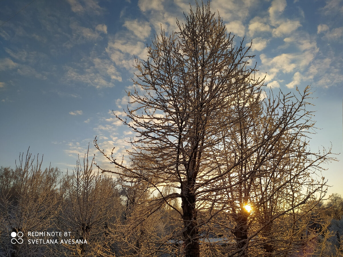 Апрельский снег на пробудившихся деревьях