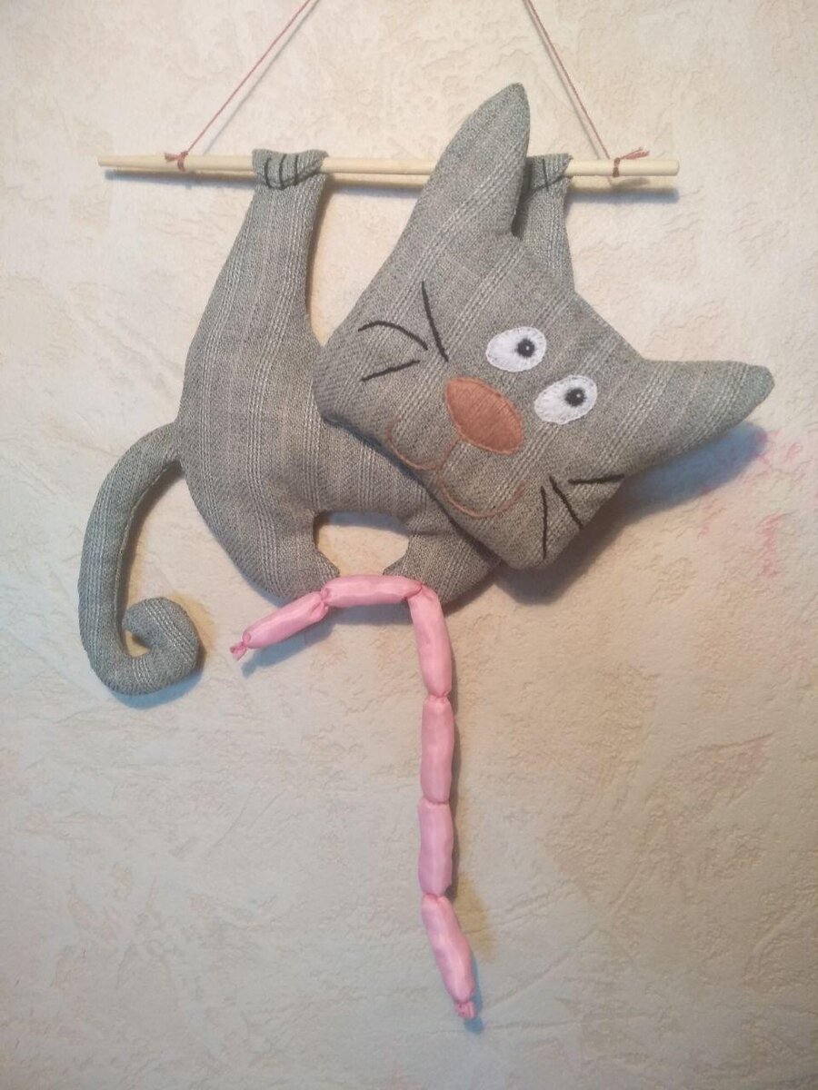 Как сделать забавного текстильного котика для малыша, пошагово с фото