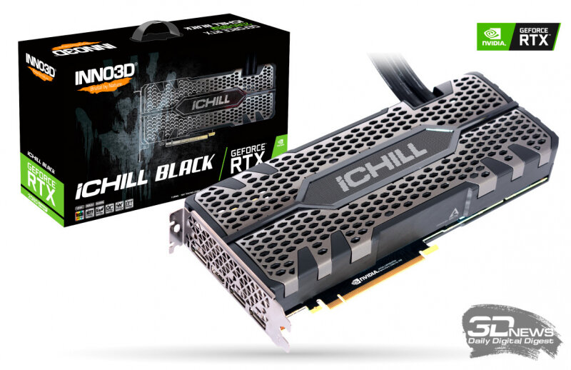 Новая INNO3D GeForce RTX 2080 SUPER iChill Black как раз входит в эту «великолепную семёрку», поскольку оснащена системой жидкостного охлаждения, работающей очень тихо. При этом сама видеокарта получилась компактной и не выходит за пределы двух слотов PCIe.