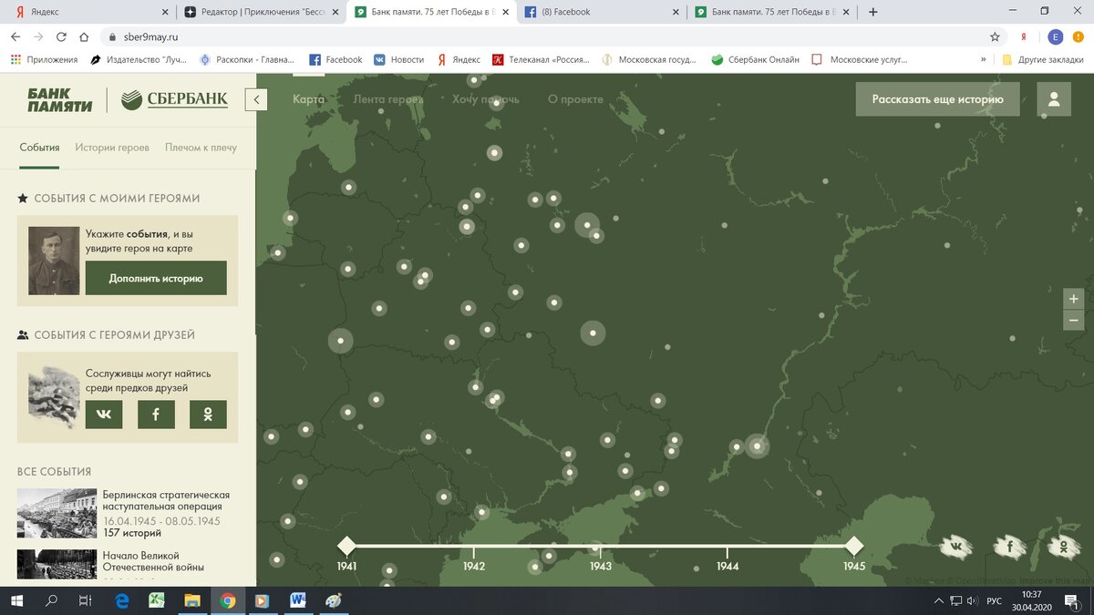 Два дня назад я начала разбираться с тем, как добавить своего героя в онлайн-шествие "Бессмертного полка" Как это было, читайте здесь. Мне было сообщено, что моя заявка поступила на модерацию. Сегодня, два дня спустя, я решила посмотреть, что изменилось на сайте https://www.polkrf.ru/ - и с удивлением обнаружила, что там не изменилось ровным счетом ничего. А поскольку память о дедушке для меня - не пустой звук, я решила пойти по короткому пути, о котором писала в предыдущей статье. Заполнив анкету, я нажала на кнопку "Отправить заявку на участие" - и после этого неожиданно получила возможность перейти на сайт Сбербанка "Банк памяти". Перешла туда и обнаружила, что и туда можно добавить "своего героя". Не поленилась - заполнила еще раз анкету (дед того стоит!) и - безо всякой модерации сразу получила результат: Решила опубликовать историю в соцсети - снова сюрприз. В публикации оказались не данные моего дедушки, а... реклама сайта: Правда, если щелкнуть по картинке, действительно по