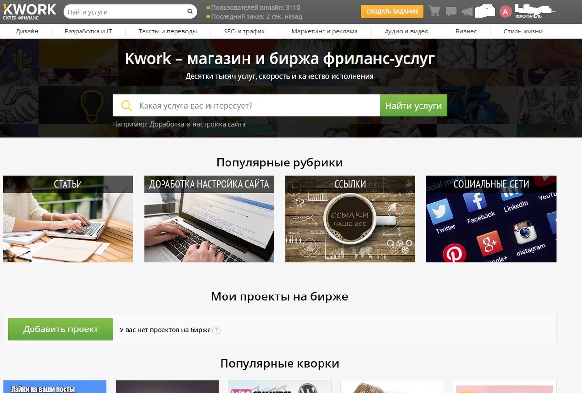 Партнерская программа биржи фриланса KWORK даст вам возможность заработать на своих рефералах. На этом сайте регистрируются фрилансеры и предлагают свои услуги абсолютно любых категорий (разработка дизайна, IT, написание текстов, продвижение сайтов, реклама, аудио и видео, прочие услуги) на разный вкус и кошелек. Услугу у них (кворк) можно заказать от 750 рублей, все сделки защищены, поэтому сайт 100% надежный. https://buxrabota.com/partnerskaya-programma-birzhi-frilansa-kwork