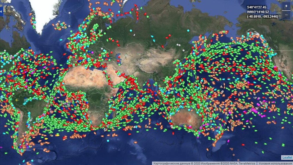Недавно, я описывал сервис, который показывает полеты самолетов по всему миру в реальном времени. Оказывается существует похожий сервис для поиска гражданских судов. Благодаря спутникам и специальным станциям на берегу, можно наблюдать за перемещением любого судна: пассажирского, рыболовного, танкера и других. Для наглядности покажу, как выглядит общий трафик всех судов в мире! Вот такая получается веселая картинка, аж в глазах рябит. Как вы видите, никакой карантин не может помешать передвижению кораблей. Бизнес, есть бизнес. На интерактивной карте можно убрать лишние суда, оставив лишь то, что нам надо. Так как нас интересуют танкеры, оставим только их. Карта-схема передвижения танкеров. Как можно заметить, ручейки из танкеров с нефтью, кое-где плавно перетекают в мощные потоки. Удобно, что каждый танкер можно идентифицировать: узнать название, вместимость и куда направляется. Как известно, Саудовская Аравия сейчас главный поставщик легкой нефти на мировые рынки. В прошлом месяце она