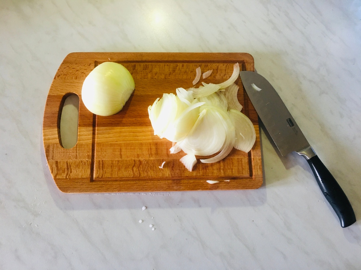 Решил я недавно разгрузить морозилку и обнаружил мякоть говядины купленную еще месяц назад. Что будем сегодня готовить? Посмотрел по холодильнику и придумал - сегодня будет бефстроганов, такой как я когда-то готовил в поварском колледже по старому сборнику рецептур. Лучше для бефстроганова конечно вырезка, сливки и грибы, но не всегда такие дорогостоящие ингредиенты есть в холодильнике. Нам понадобятся: Сметана - 250гр. Мякоть говядины - 400гр. Специи - соль,перец Соленые огурцы - 4шт. Приступаем: Нарезаем все ингредиенты соломкой. Сначала обжариваем лук, затем туда кладем мясо ,обжариваем до полуготовности, добавляем стакан воды , закрываем крышкой и тушим на медленном огне в течении 40 минут. Время от времени проверяем, чтобы вода полностью не выпарилась, при необходимости добавляем её. Пробуем мясо, от такой тепловой обработки все жилки станут мягкими. Добавляем огурцы, тушим 5 минут, затем добавляем сметану и специи. Я добавил соль, перец и сухой чеснок. Доводим до кипения и гот
