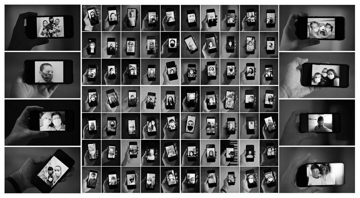 Участниками проекта стали 92 самоизолировавшихся человека: друзья, родственники, знакомые, которые посылали свои селфи через соцсети. Мне было недостаточно показать другим фотографии этих людей в масках, было важно показать их на своём смартфоне, в своих руках.