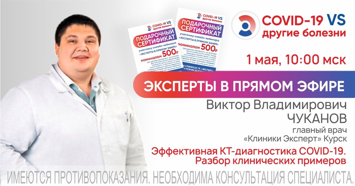 Серия просветительских онлайн-вебинаров для пациентов от экспертов медицины продолжится в мае. Уже 1 мая, в 10.00 на канале YouTube ГК «Эксперт» стартует прямой эфир с Виктором Чукановым, главным врачом «Клиники Эксперт» Курск на тему: «Эффективная КТ-диагностика COVID-19. Разбор клинических примеров». Ставьте напоминание, чтобы не забыть. Контролируйте здоровье с экспертами медицины! Для всех участников прямого эфира подготовлен подарок от ГК «Эксперт» - подарочный сертификат на 500 руб. на получение услуг в диагностическом центре «МРТ Эксперт» или «Клинике Эксперт», расположенным к вам в ближайшем населенном пункте. Подробную информацию о территориальной доступности и режиме работы подразделений можно узнать на сайте https://www.mrtexpert.ru/ 5 шагов, как получить ПОДАРОЧНЫЙ СЕРТИФИКАТ: В рамках мероприятияэксперту можно задать интересующие вопросы. Приглашаем к просмотру: https://www.youtube.com/watch?v=qZcNzAxEJqs Напоминаем, что еженедельно, по вторникам и пятницам в 10.00 по МСК