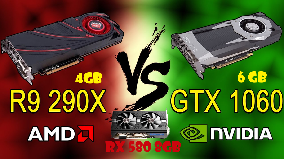 Желтая - 1060 6гб. Синяя - RX 580 8гб. Красная - R9 290X