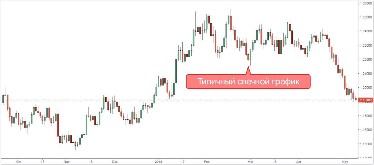 Давайте посмотрим на традиционный свечной график, чтобы увидеть движение цены более подробно.