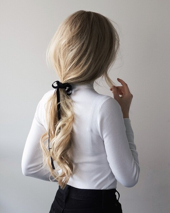С помощью широкой атласной ленты вы можете создать множество простых, но стильных причесок, которые придадут вам изысканный вид, при этом будут практичны и не помешают вашей повседневной жизни. Лента — стильная и милая замена привычной резинке для волос, ее можно использовать каждый день и создавать простые, милые, но элегантные укладки. Это идея, которая преобразит классическую прическу конский хвост или косу, лентой можно украсить растрепанные пучки или «рыбий хвост». Идеи с лентой покажут вам, насколько большое значение может иметь такая маленькая деталь, и всего несколькими движениями вы придадите вашим волосам гладкость и стиль. Приподнятый хвост Если вы просто играете с детьми, читаете и хотите убрать волосы с лица, эта прическа — ваш стильный и практичный выбор. Вывернутый хвост Чтобы стилизовать хвост, как на фото, прямо над тем местом, где находится резинка для волос, сделайте пальцем отверстие и проведите хвост через это отверстие. Повяжите любимую ленточку в том месте, г