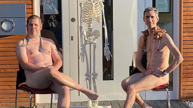 Немецкие врачи в знак протеста из-за нехватки необходимых средств индивидуальной защиты в условиях пандемии коронавируса массово публикуют снимки в голом виде на рабочих местах.