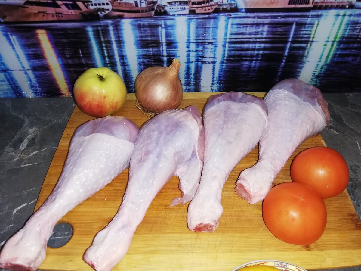 Нежная индейка. Низкокалорийное мясо индейки можно включить в рацион людям всех возрастов. Оно обладает массой полезных свойств. Правильно приготовленная индейка будет не полько полезной, но и очень вкусной. Ингредиенты: 1. Ножки индейки 4шт. 2. Лук. 1шт. 3. Помидор 2шт. 4. Болгарский перец 1шт. 5. Половина лимона 6. Одна головка чеснока 7. Растительное масло 8. Соль, перец, горчица. 9. Рукав для запекания. Шаг 1. Маринад. Для него нам понадобиться: болгарский перец, помидоры очищенные от кожуры, 10 зубчиков чеснока, сок половины лимона, соль, перец, горчица одна чайная ложка. Все эти ингредиенты выклабываем в блендер и взбиваем до однородной массы. Шаг 2. Лук нарезаем полукольцами. Берем пакет для запекания. Выкладываем в него ножки индейки лук и поливаем все маринадом. Завязываем пакет и аккуратно перемешиваем, так чтобы не порвать пакет. Шаг 3. Отправляем готовиться в разогретую до 190 © духовку на пол