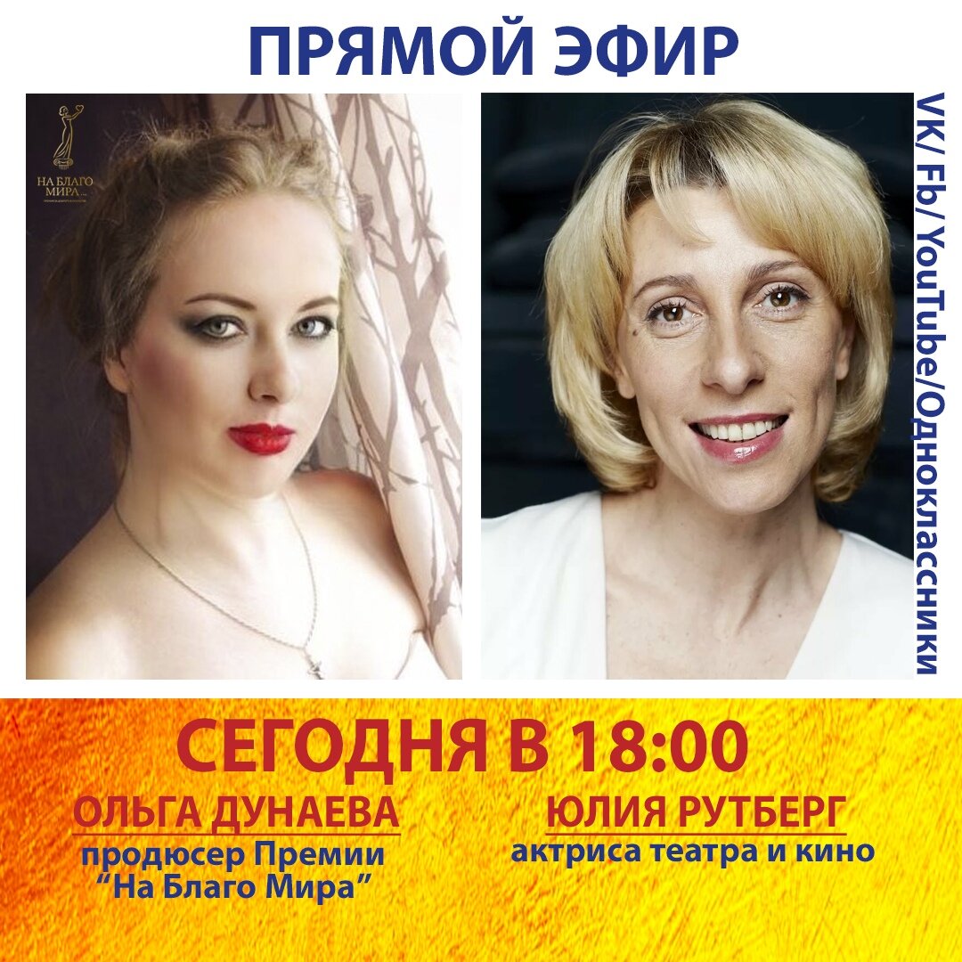 Друзья! Сегодня у нас в прямом эфире Юлия Рутберг • актриса театра и кино• Народная артистка РФ• Лауреат российских театральных премий «Чайка» и «Хрустальная Турандот». Есть вопросы? Пишите в комментариях на официальных страницах Премии: Вконтакте Фейсбук Одноклассники Youtube