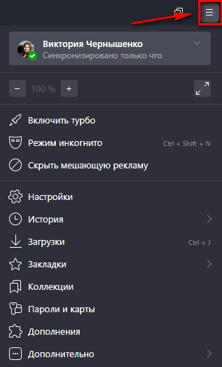 - Если мешает боковая панель с быстрым доступом к инструментам, перейдите в меню браузера, нажмите «Настройки».