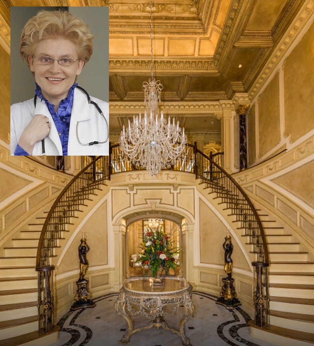 Недавно социальные сети потрясло известие о недвижимости знаменитого телемедика Е. Малышевой в пригороде Нью-Йорке, на берегу реки Гудзон. Роскошный особняк площадью 1100 метров квадратных, насчитывает 21 комнату. Отделка, которой могут позавидовать и арабские шейхи, выполнена дорогими материалами. Интерьер представлен антикварной мебелью, хрустальными люстрами... В общем поражает не только количество квадратных метров, сколько роскошное убранство . Это " скромное " жилье Малышева приобрела за 6,4 миллиона долларов, что в рублевом эквиваленте равняется приблизительно полмиллиарда рублей. Да, да, вы не ослышались, кроме того у Малышевой есть две квартиры в США, принадлежащие её детям, которые живут и работают на благо Америки.Кроме того, есть квартира в Москве и загородный дом в Подмосковье, три далеко небюджетных автомобиля, и наверняка, много ещё того, о чем мы не узнаем, так как знаменитый телемедик ведет довольно скрытный образ жизни. И тут возникает вопрос. Сколько должен зараба