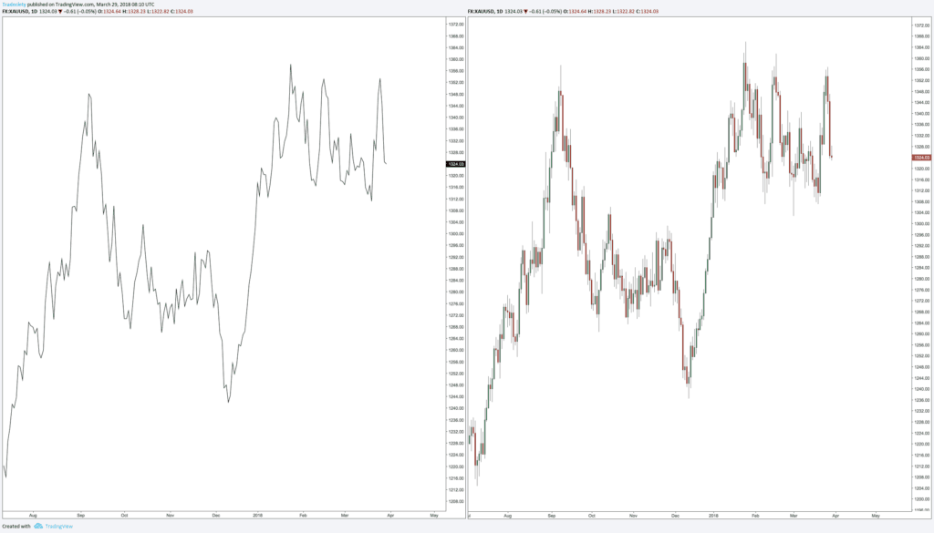Если мы выстроим несколько свечей, мы можем сравнить их с линейным графиком. Тени свечей также показывают колебания цены. Таким образом, мы сразу получаем максимум информации, которая необходима нам для эффективного анализа рынка. Вот почему в наши дни для технического анализа в основном используются японские свечи.