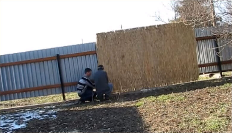Надоел вид стройплощадки во дворе - решили отделать забор камышом.