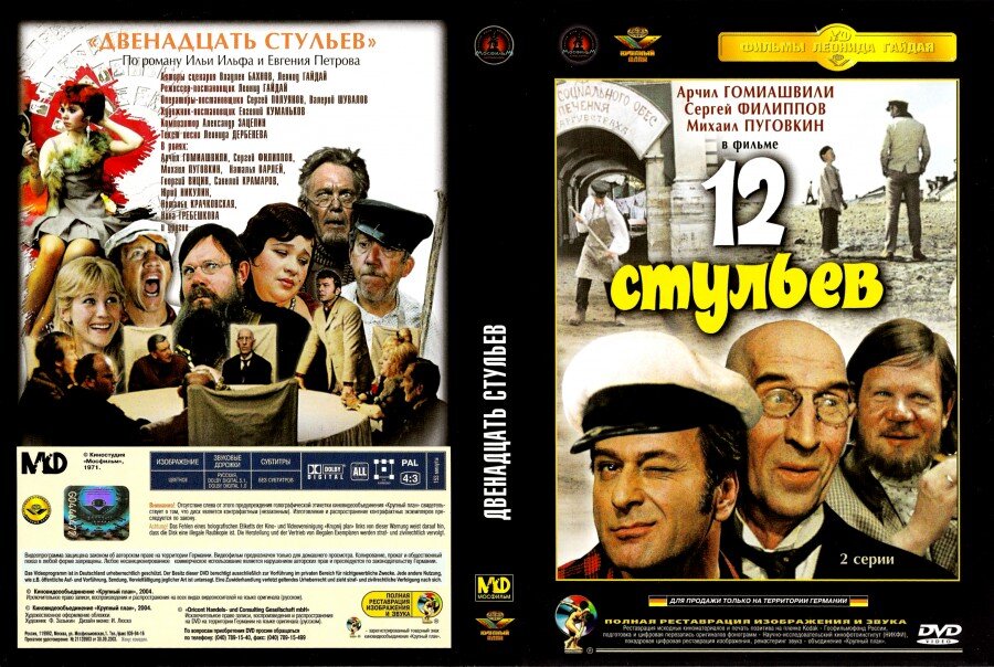 12 стульев (реж. Леонид Гайдай, 1971 г.) Эта экранизация на мой взгляд и есть самая лучшая. Она яркая, энергичная, драйвовая, динамичная, шикарная, отличная, великолепная и золотая!! Один из самых лучших фильмов. Гайдай - мастер комедии и великий режиссёр. Шедевров он нам много подарил, в том числе и великолепную экранизацию "12 стульев". В этом фильме и замечательный и блестящий актёрский состав - Гомиашвили, Филиппов, Пуговкин, Вицин, Никулин, Крамаров, Горлов, Павлов, Этуш, Ронинсон, Богданова-Чеснокова, Крачковская, Варлей, Гребешкова и др. Гомиашвили - лучший Бендер! Также как Юрский из "Золотого телёнка". Филиппов естественно - лучший Киса Воробьянинов. Здесь все актёры сыграли великолепно и потрясающе!! Лучший Бендер! Лучший Воробьянинов! Лучший отец Фёдор! Лучший режиссёр Гайдай! Лучшая экранизация! 12 стульев (реж, Марк Захаров, 1976 г.) Эта экранизация мне лично тоже нравится. Но не так, как версия Гайдая. Версия Захарова тоже хорошая, но не шедевр. В экранизации Гайдая было