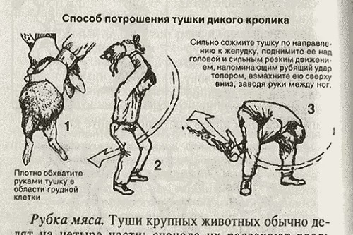 Но самой яркой сценой, описанной в книге, был способ потрошения кролика. Чтобы шкурка осталась чистой и нетронутой, кролик потрошится не как другая скотина через разрез на животе, о нет. Есть более изощренный способ — делается круговой надрез вокруг ануса (в этом шаге я не уверен, возможно его выдумала моя детская, но логически мыслящая фантазия), потом тушка обхватывается за грудь и человек совершает резкое движение, похожее на удар топором, чтобы инерция сделала все грязное дело за него.