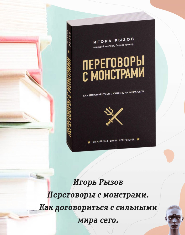 Игорь Рызов. "Переговоры с монстрами". Игорь Рызов – один из признанных экспертов по ведению переговоров. Автор серии книг, бизнес-тренер, консультант по переговорам крупных Российских корпораций. Часто, в процессе общения люди задают вам вопросы, которые ставят в тупик? Сложно выступать перед аудиторией? Не хватает слов для того, чтобы убедить собеседника в своей правоте? Легко поддаетесь на провокации в беседе? Книга станет хорошим помощником в решении этих вопросов! Книга для тех, кто хочет научиться грамотно вести переговоры, убеждать, овладеть приемами самоконтроля в условиях жестких переговоров. Роберт Чалдини. «Психология влияния». Книга не только о переговорах. Автор описывает эффективные психологические приемы воздействия на людей и учит распознавать обман мошенников и манипуляторов. Книга - результат многолетних исследований межличностных отношений. Ее издавали многомиллионными тиражами и признали бестселлером. Труд перевели на девять языков. У автора появилось много
