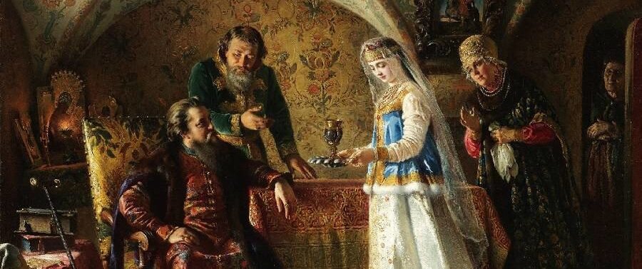Помолвка - еще не свадьба. Но это уже "хоп -хэй", за которым следует долгожданное "ла-ла-лэй". На Руси молодожены даже не знали, что им предстоит жениться. Эти вопросы решались родителями - мало кто гонится за любовью, когда стоит вопрос, как выжить и не потерять честь дома. Поэтому традиция помолвки была лишена излишнего романтизма, но мероприятие все равно, так или иначе, было занятным. Начиналось все со сватовства. В дом к невесте приходил жених с родственниками (сватами), заводили разговоры на отдаленные темы, постепенно переходя к главному. Девушка тем временем молча занималась делами, демонстрируя навыки хозяйки. Гости же наблюдали и вели торги с отцом невесты. Затем шел обряд рукобития, теперь уже родные невесты шли в дом к жениху и выясняли, на что она сможет рассчитывать в предстоящем браке. После этого обсуждались такие утилитарные вопросы как приданое, предстоящие расходы, распределялись свадебные чины, утверждалась дата свадьбы. И уже заключительным предсвадебным эт