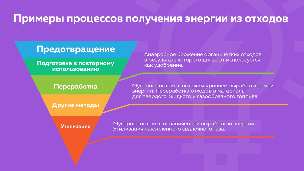 Одним из наиболее безопасных и эффективных способов переработки отходов в энергию на сегодняшний день признана технология сжигания неперерабатываемых отходов на колосниковой решетке при 1260℃. Все вредные вещества в этом случае гарантированно уничтожаются, а дымовые газы фильтруются многоуровневой системой очистки. В итоге из трубы выходит чистый пар. Всего в Европе сейчас строится 30 заводов «Энергия из отходов». Та же технология выбрана и для российских заводов.