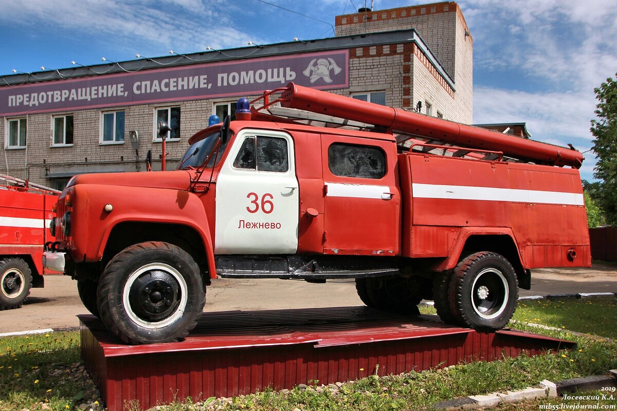 В пожарной части ПЧ-36 посёлка Лежнево Ивановской области установлен интересный пожарный автомобиль-памятник - автоцистерна АЦ-30(53-12)-106В.